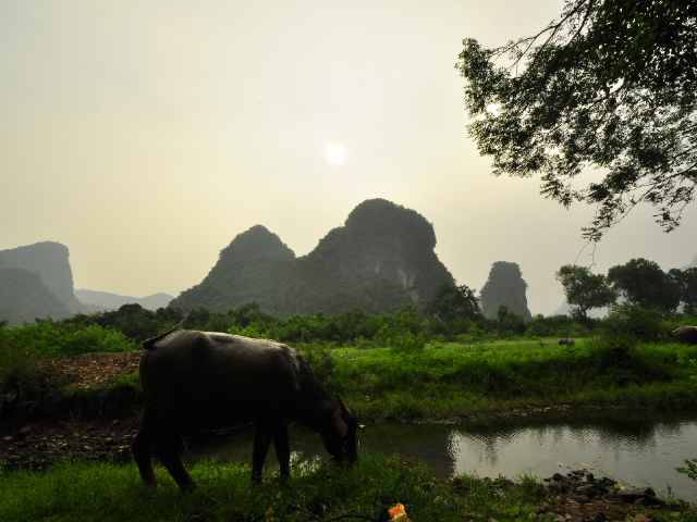 Yangshou ist eines der schönsten Fleckchen Erde, die ich bis jetzt gesehen habe. Hier ist man umringt von Kastbergen, Flüssen, Reisfeldern und einer extrem friedlichen Bevölkerung, mal abgesehen von Yangshou Stadt. Diese ist fest in den Händen des Massentourismus gefallen. Nach einer kompletten Woche Sport, Mountainbiken, Kajak fahren, klettern und schwimmen ist es jetzt mal wieder Zeit weiter zu ziehen. Am Di. geht es dann erst mal nach HongKong, mit der Hoffung auch eine Unterkunft zu bekommen, da hier gerade die Urlaubszeit der Chinesen angefangen hat. Die Auswirkungen sind extrem, man ist umgeben von Millionen reiselustiger Chinesen und die Preise der Transportmittel verdoppeln sich in dieser Zeit. Ich konnte trotzdem nach ein Busticket nach HK ergattern. Auf den Bildern kommt die Landschaft leider nicht so gut rüber, da es fast jeden Tag ein wenig diesig war. Aber live ist das schon ziemlich cool hier.